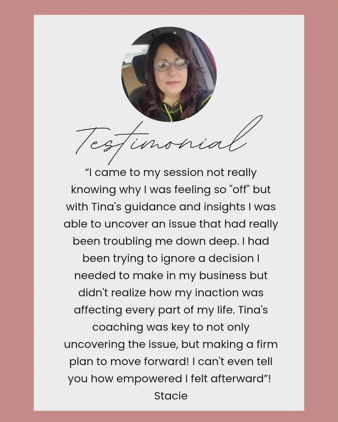 As a certified life coach, my passion is helping women uncover their purpose, set meaningful goals, and overcome the obstacles keeping them stuck. Whether you’re navigating a major life change, launching a business, strengthening relationships, or adjusting to midlife shifts as kids grow and leave the nest, coaching with me offers a safe space to speak your truth, explore your options, and create a plan for your next steps.